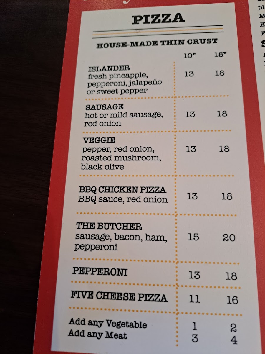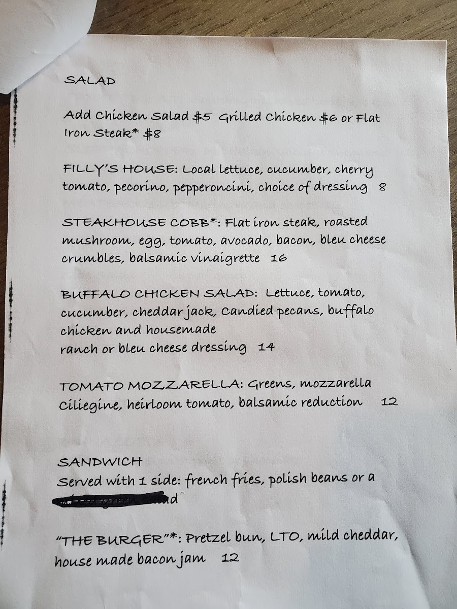 Specialty pizzas and custom made pizza available. Call for pricing! Menu at fillyandcolts.com
